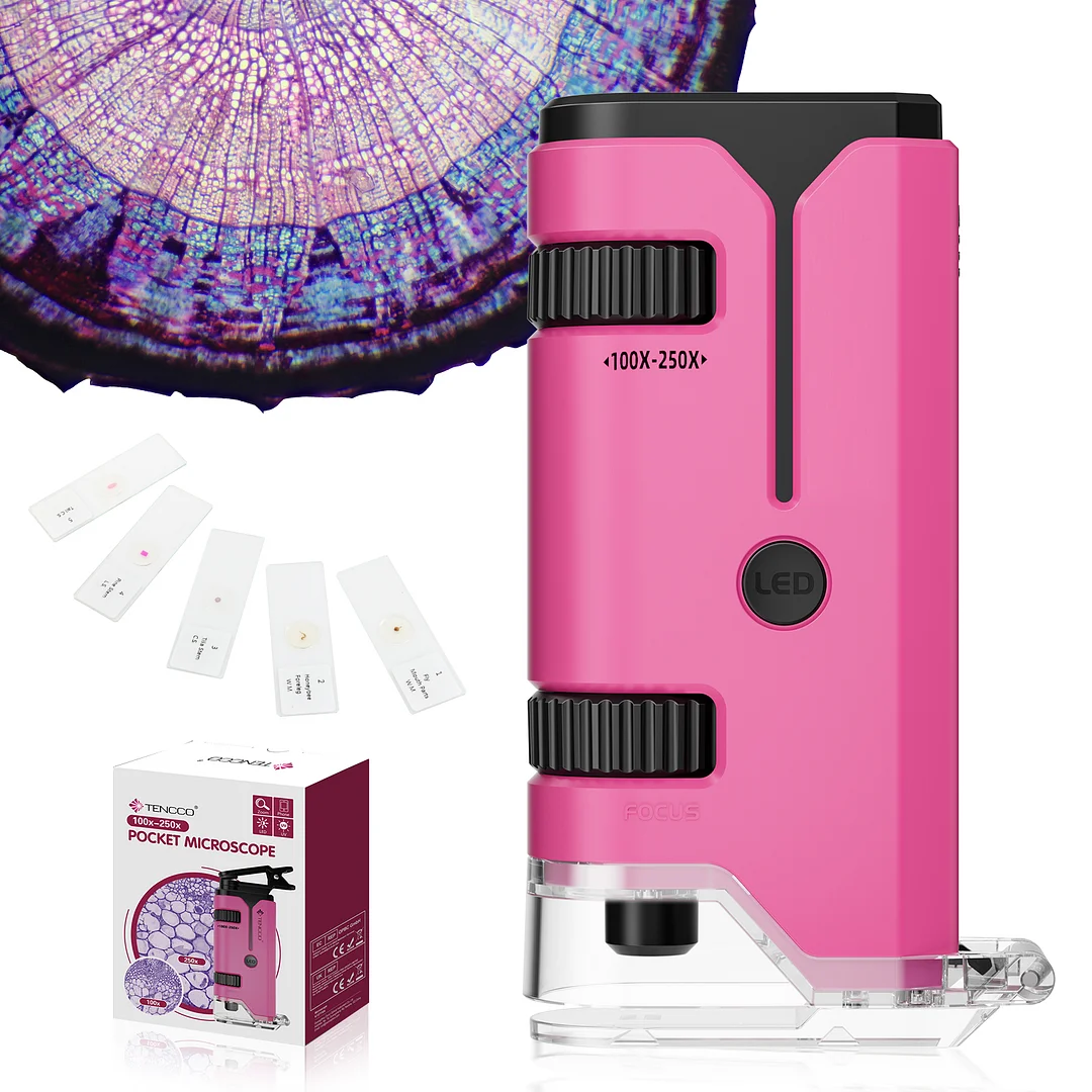 BEBANG Pocket microscope is designed for kids students adults to explore and understand the fantastic world of life science. It's an amazing tool for science Lab Class Home Study. The mini microscope magnification is 100X-250X and equip with a double-layer focus system, which make it easier to focus. The kids microscope comes with LED light, and the soft light can protect your eyesight.