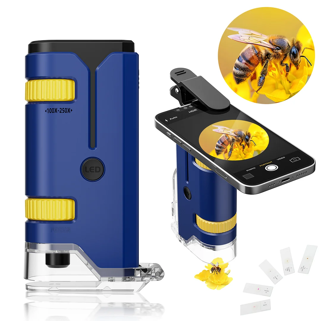 BEBANG Pocket microscope is designed for kids students adults to explore and understand the fantastic world of life science. It's an amazing tool for science Lab Class Home Study. The mini microscope magnification is 100X-250X and equip with a double-layer focus system, which make it easier to focus. The kids microscope comes with LED light, and the soft light can protect your eyesight. The small microscope case is made of super lightweight and high-quality ABS plastic. The pocket microscope weighs only 1.1oz, which is super light.