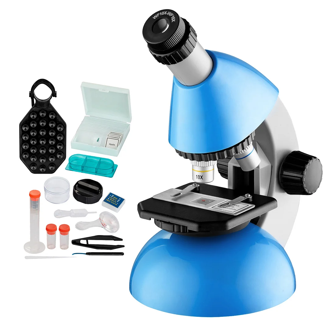 【2 Eyepieces/6 Kinds of Magnification】The kids microscope are equipped with interchangeable (4X, 10X, 40X) objectives and wide field of 10X, 16X eyepieces, offering 6 kinds of magnification, from 40X, 100X, up to 640X. Compact microscope for kids beginners interested in science, nature, plants and insects from a micro view.