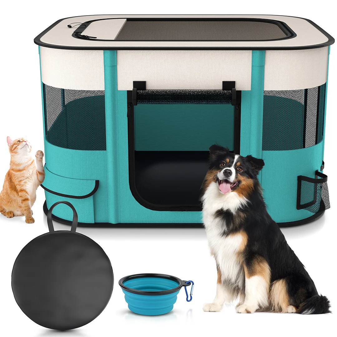 【Safe & Durable】Dog playpen is made of high-grade washable 600D Oxford cloth, which is scratch-resistant soft and odorless. Dog playpen strong and lightweight steel tube frame, ensure stability and prevent collapses, giving you peace of mind while your pets enjoy their playtime.